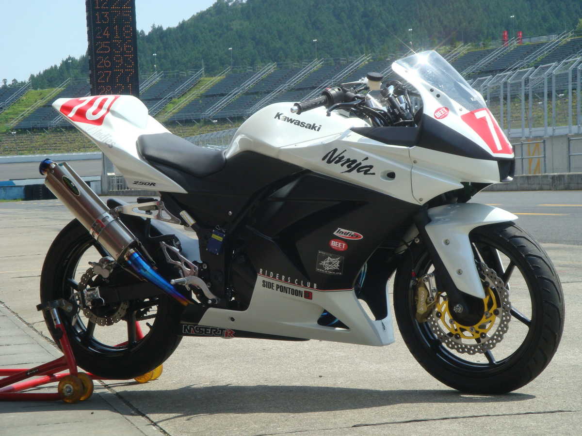 「[em]マフラーの[color=#F00]トルクバンドの広い特性[/color]のためか、体重の決して軽くない私達ですが、[color=#F00]ストレートでアドバンテージがあるので[/color]耐久レースとしても[color=#F00]非常に有利[/color]でした。前車を抜くときも、少しくらい回転がおちてもトコトコと付いてくるし、コーナーを失敗しても、リカバリーが効きますし、決勝中ずいぶん助けられたと思います。250なんでそれほどパンチはありませんが[color=#F00]とにかくパワーバンドがワイドです。[/color]ライダーも68〜85kくらいの大人が運転していましたが、皆さん同じようなことを言ってました。特に裏のストレートではヘアピンからパワー競争になるわけですが他のニンジャにはまず抜かれません、[color=#F00]ヘアピンで後ろにいればV字コーナーで確実に前に出れます。[/color]軽量で、音量も余裕でクリアでした。[/em]」