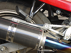 - 材質は、エキゾーストパイプがステンレス、テールパイプがチタン、サイレンサーはカーボン仕様
