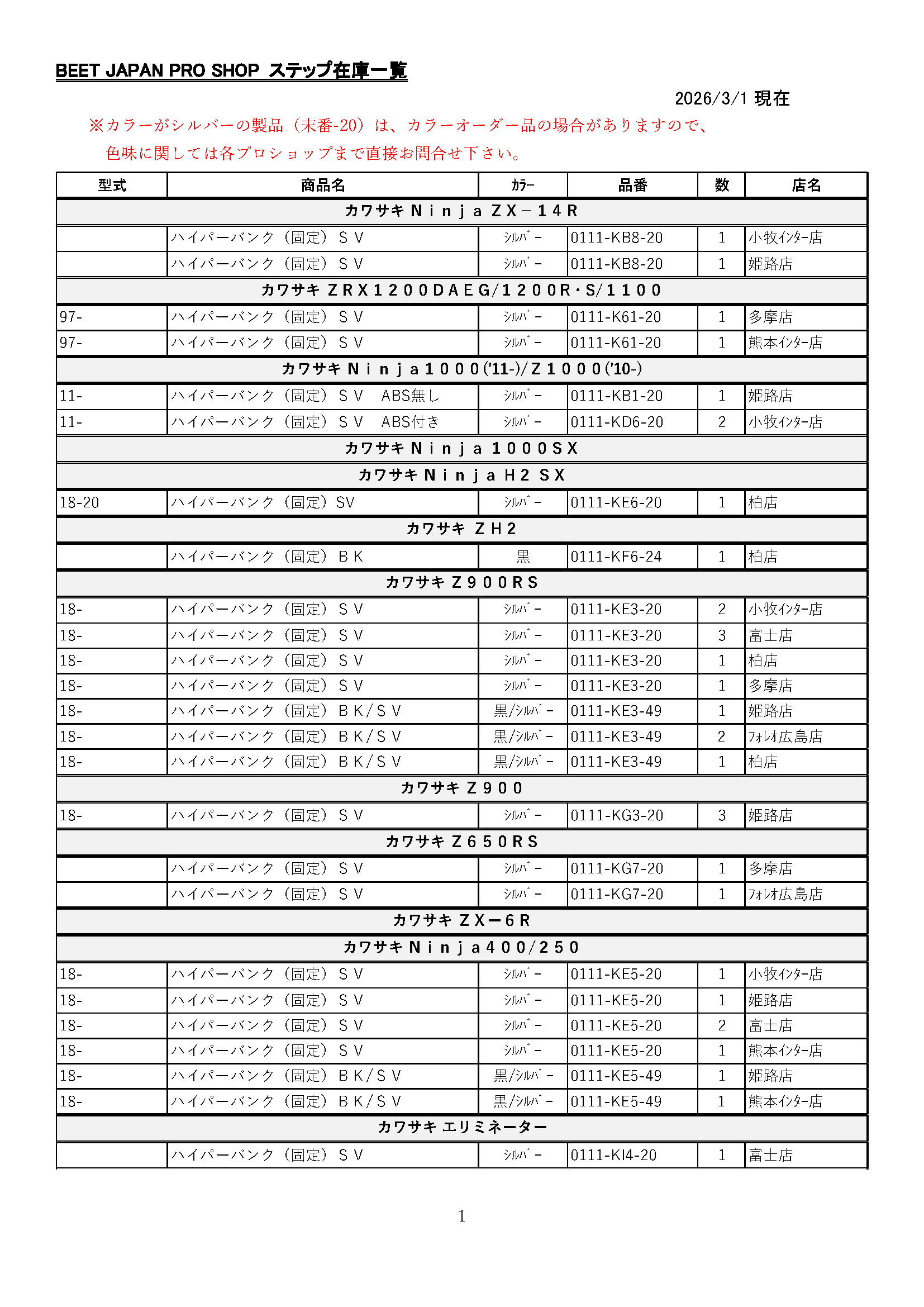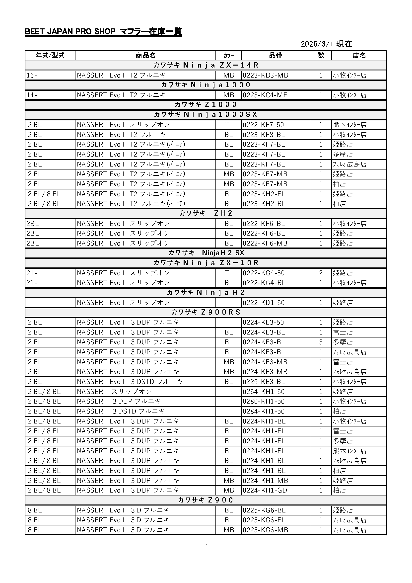 | BEET JAPAN PROSHOP ¥Ï¥¤¥Ñ¡¼¥Ð¥ó¥¯ºß¸Ë°ìÍ÷ɽ¡Ú3/1¹¹¿·¡Û | 2026ǯ3·î31Æü |